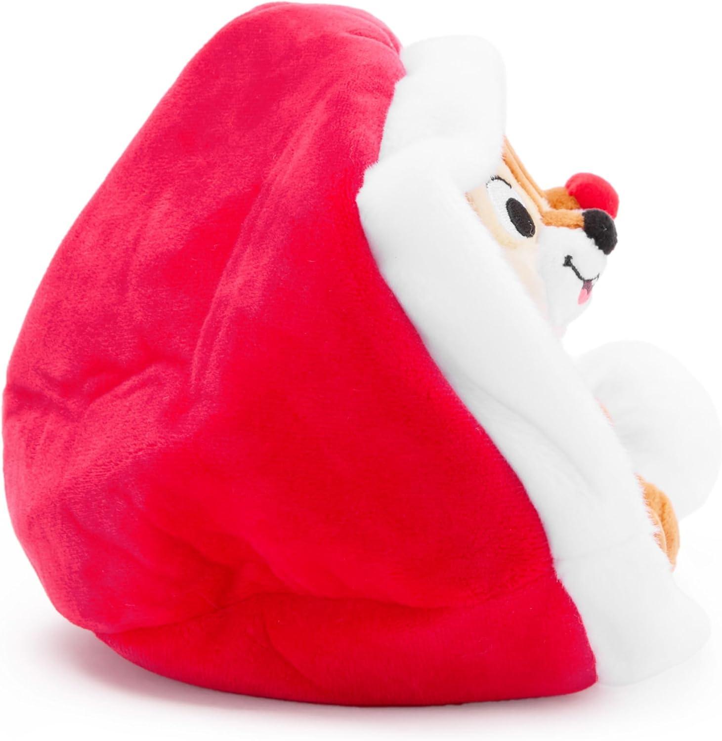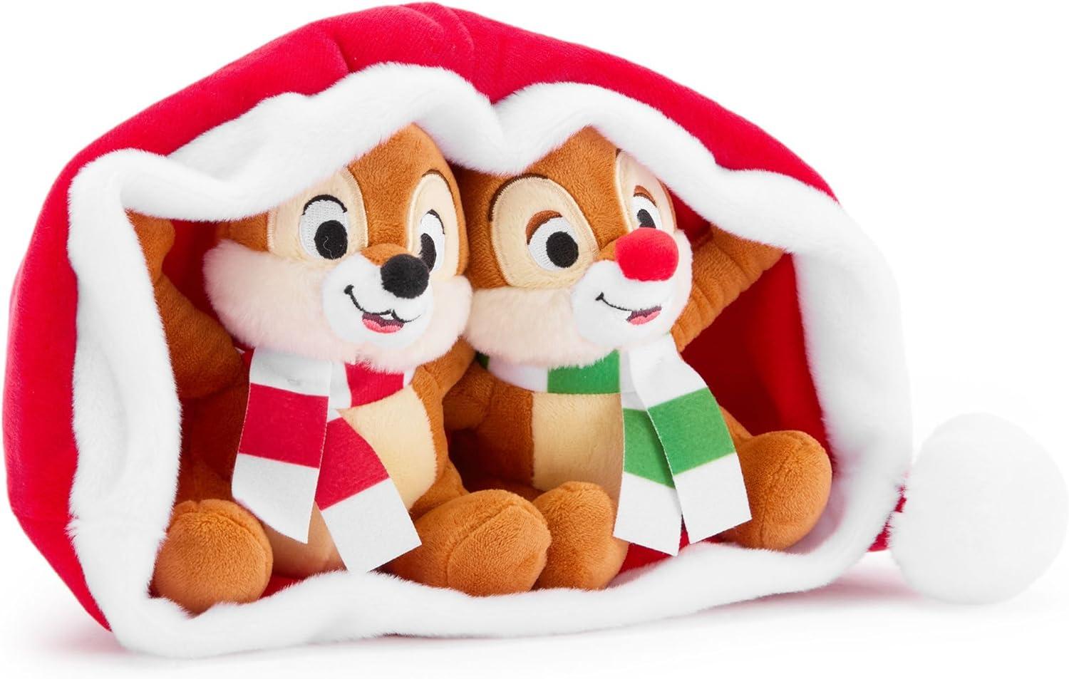 Adorable Holiday Mischief: Discover the playful charm of Disney toys with Chip 'n Dale in a Santa hat. These cute plushies are perfect for Disney Christmas fun, featuring detailed plush sculpting and embroidered features.