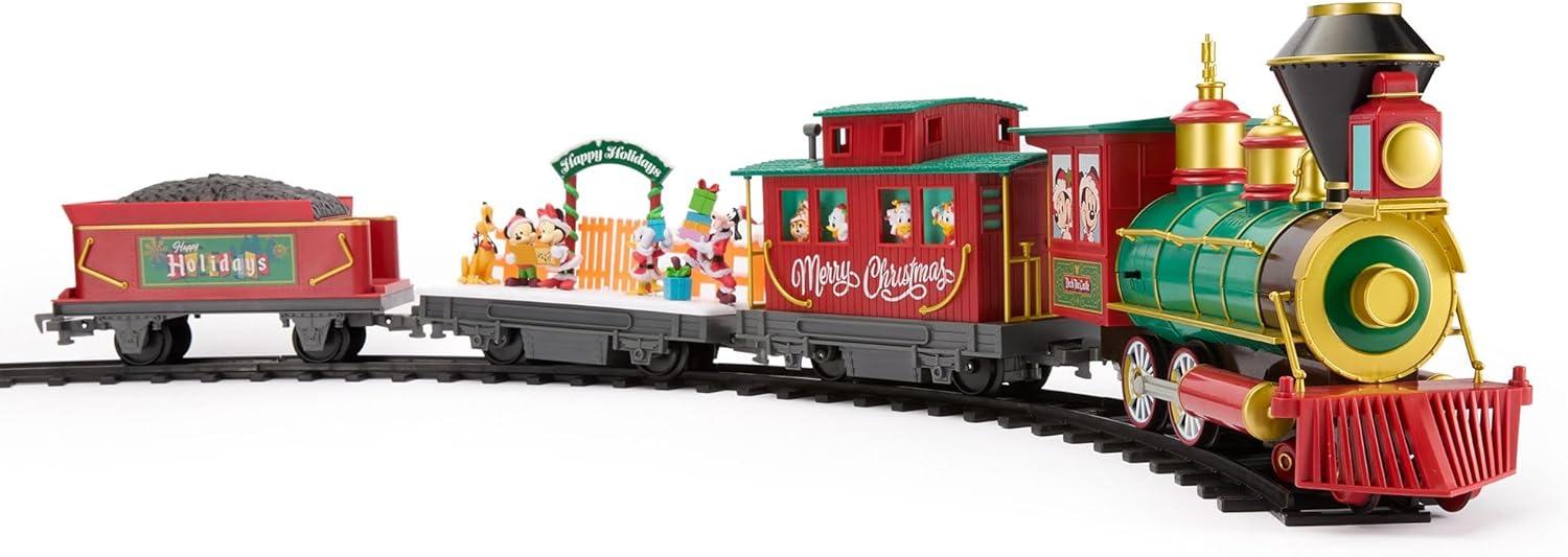 Winter Adventure: This kids train set includes embedded Disney figurines like Mickey, Minnie, Donald, Daisy, Pluto, & Goofy. The caboose part of the train features Louie, Huey, Dewey, & Chip 'n Dale figures in the windows. The best train toy gift set!