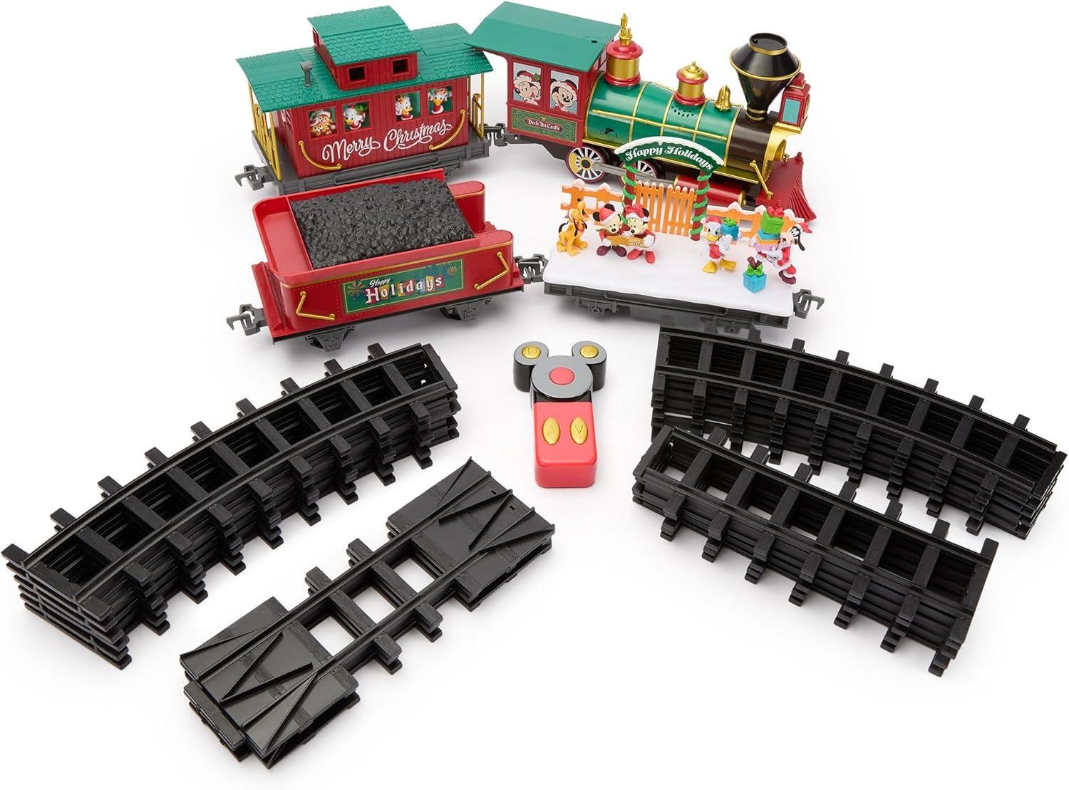 Disney Store Official Mickey Mouse & Friends Christmas Train Set - Includes Remote Control Train with 22-Piece Circular Track & 7 Festive Figures - Great for Kids who Like Building Toys & Disney Toys