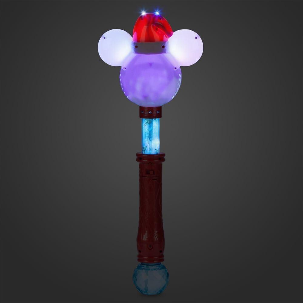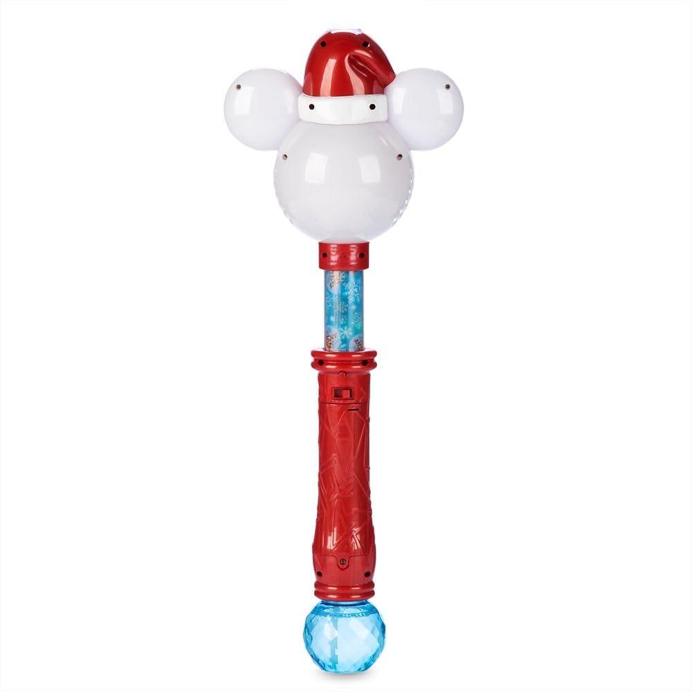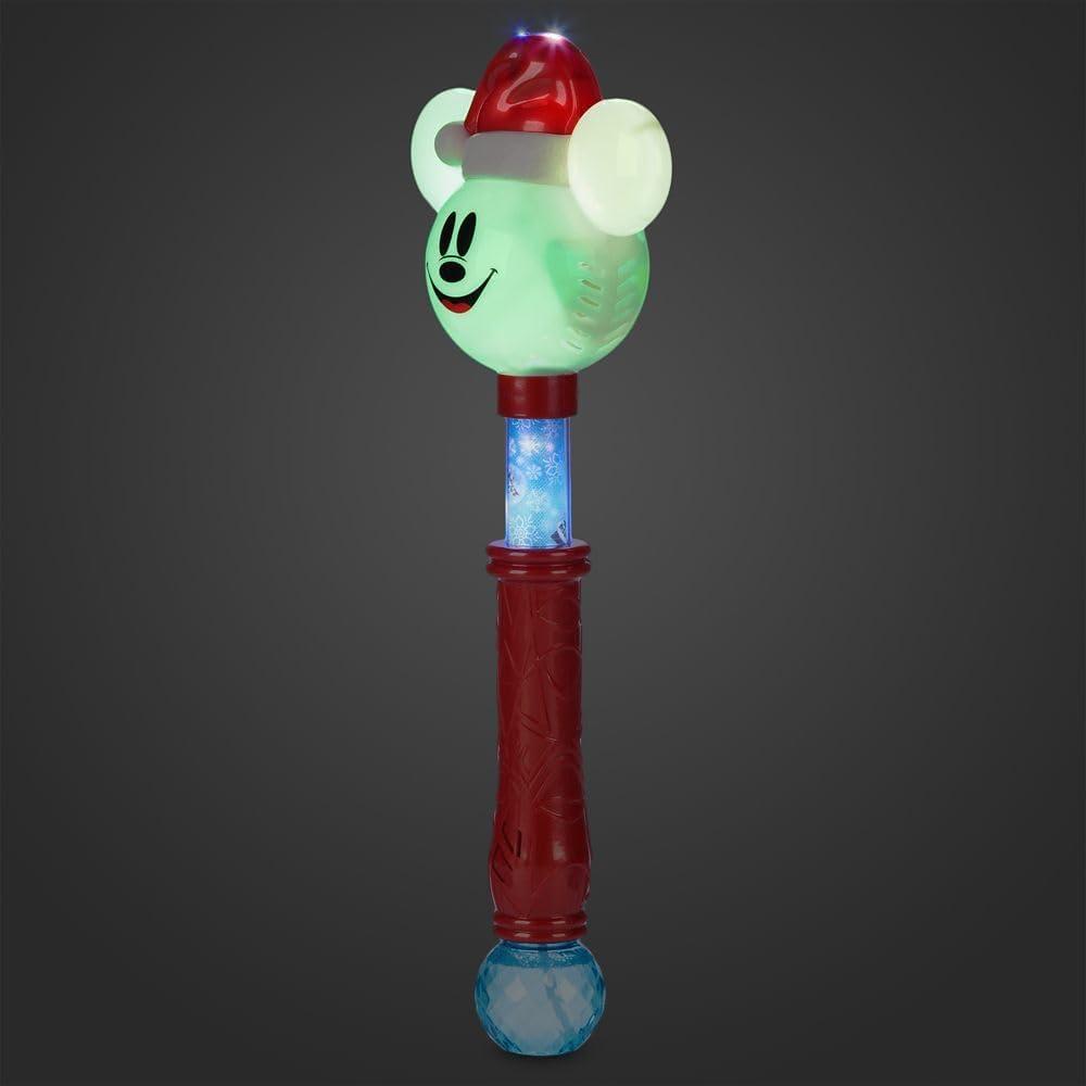 Get ready for a dazzling Disney Christmas with the enchanting Disney Bubbles Mickey Light Up Wand! Perfect for bringing a sprinkle of Disney magic into your festive celebrations, this delightful toy is all you need to light up the holiday season. Designed by Disney, this large sculpted Mickey wand is not just a toy but an experience. Your little ones will be thrilled to see the Mickey icon topper, complete with a molded Santa Mickey face, adding to the holiday cheer. The Mickey Light Up Wand offers an interactive experience that switches between vibrant lights or a mesmerizing lights and 'snow' effect. Just a flick of the switch, and watch as the stem and Mickey icon topper light up, scrolling through a captivating flashing sequence. It's not just a light wand; it's a Disney light up bubble wand that lets you drift into a magical winter wonderland. Add a touch of Disney bubbles, and you're all set for hours of fun! But that's not all! Press the separate button to hear Mickey Mouse himself. Listen to him exclaim, “Oh boy! I just love the holiday season, don't you?” or spread the festive spirit with “Merry Christmas, everybody.” And for the grand finale, enjoy Mickey singing 'We Wish You a Merry Christmas.' It's like having your very own Christmas Mickey Mouse show! This easy-grip wand features an abstracted snowflake design, making it a perfect fit for small hands. Plus, it includes 'snow' fluid, making it the ultimate Disney bubble wand for your child's collection. Whether you're at a holiday party or just enjoying some family fun, this Disney toy is sure to be a hit. Discover the magic of Disney at the Disney Store Official, where toys like this Mickey Mouse Bubble Wand are more than just toys—they're a gateway to a world of imagination. With its light-up features and interactive Mickey voice, this light wand toy is a must-have for any Disney fan. Celebrate the season with the Mickey Light Up Wand and make every moment a little more magical!
