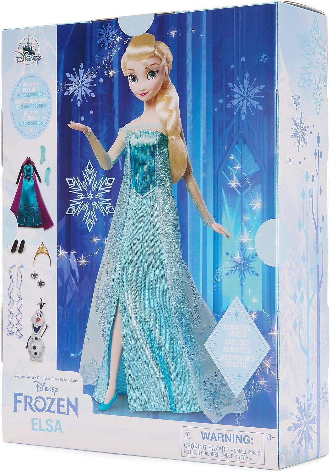 Disney Store Official Raya Story Doll – 11 Inches – Includes Coloring Book and Additional Dress, Princess Doll in Classic Outfit, Disney Princess Toys for Girls(Elsa)