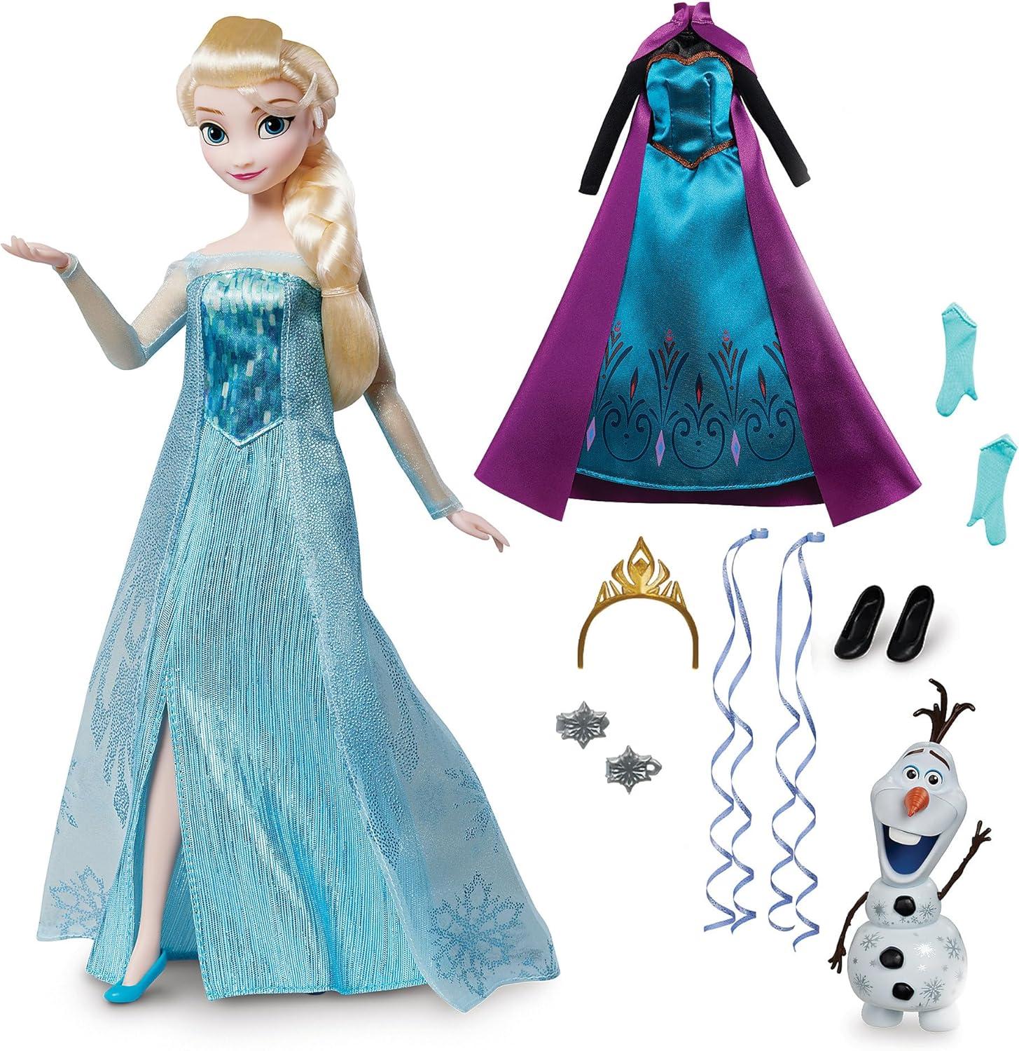 Disney Store Official Raya Story Doll - 11 Inches - Includes Coloring Book and Additional Dress, Princess Doll in Classic Outfit, Disney Princess Toys for Girls(Elsa (Blue Dress))